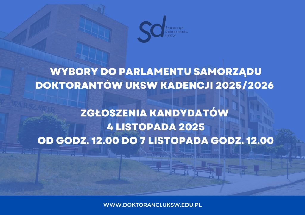 W imieniu Komisji Wyborczej Samorządu Doktorantów UKSW pragniemy poinformować o zarządzeniu wyborów do Parlamentu Samorządu Doktorantów UKSW kadencji 2025/2026.