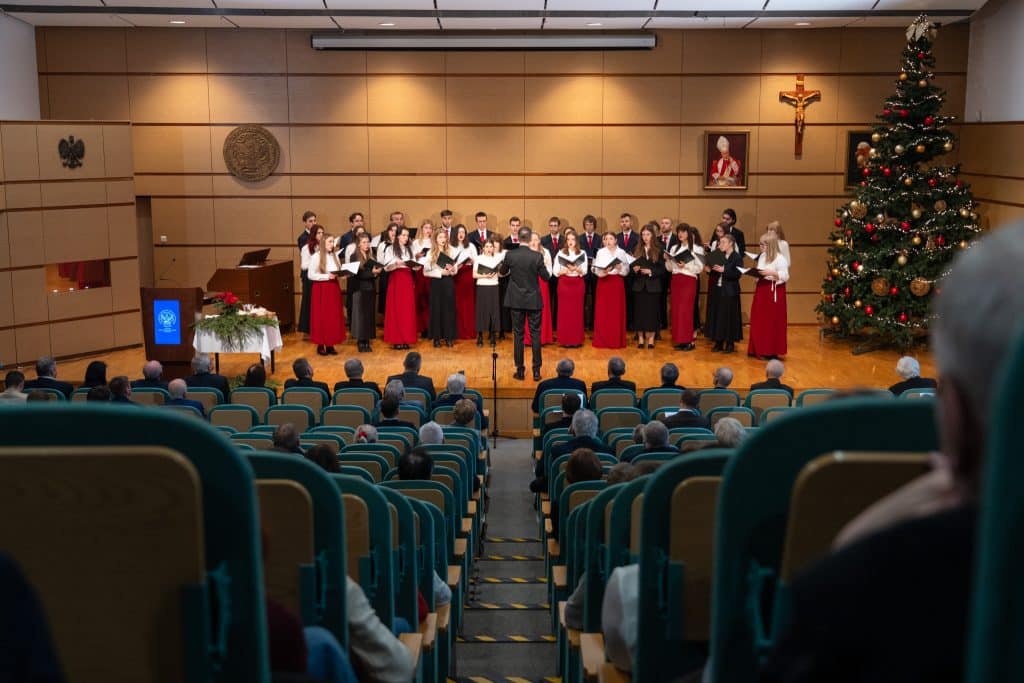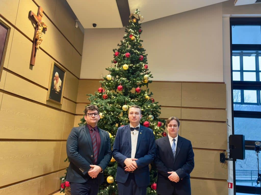 18 grudnia 2025 r. mieliśmy okazję uczestniczyć w Spotkaniu Opłatkowym na auli Jana Pawła II na kampusie Dewajtis, a społeczność Doktorantów reprezentowali Członkowie Zarządu Samorządu Doktorantów UKSW: mgr Łukasz Sitkowski, mgr Michał Winczek oraz mgr Mateusz Kazanowski.
