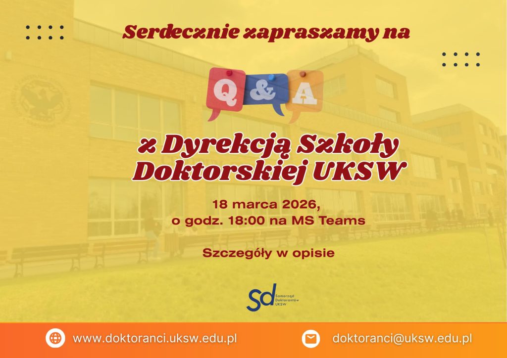 Informujemy, że termin spotkania Q&A z Dyrekcją Szkoły Doktorskiej UKSW został zmieniony. Nowa data spotkania: